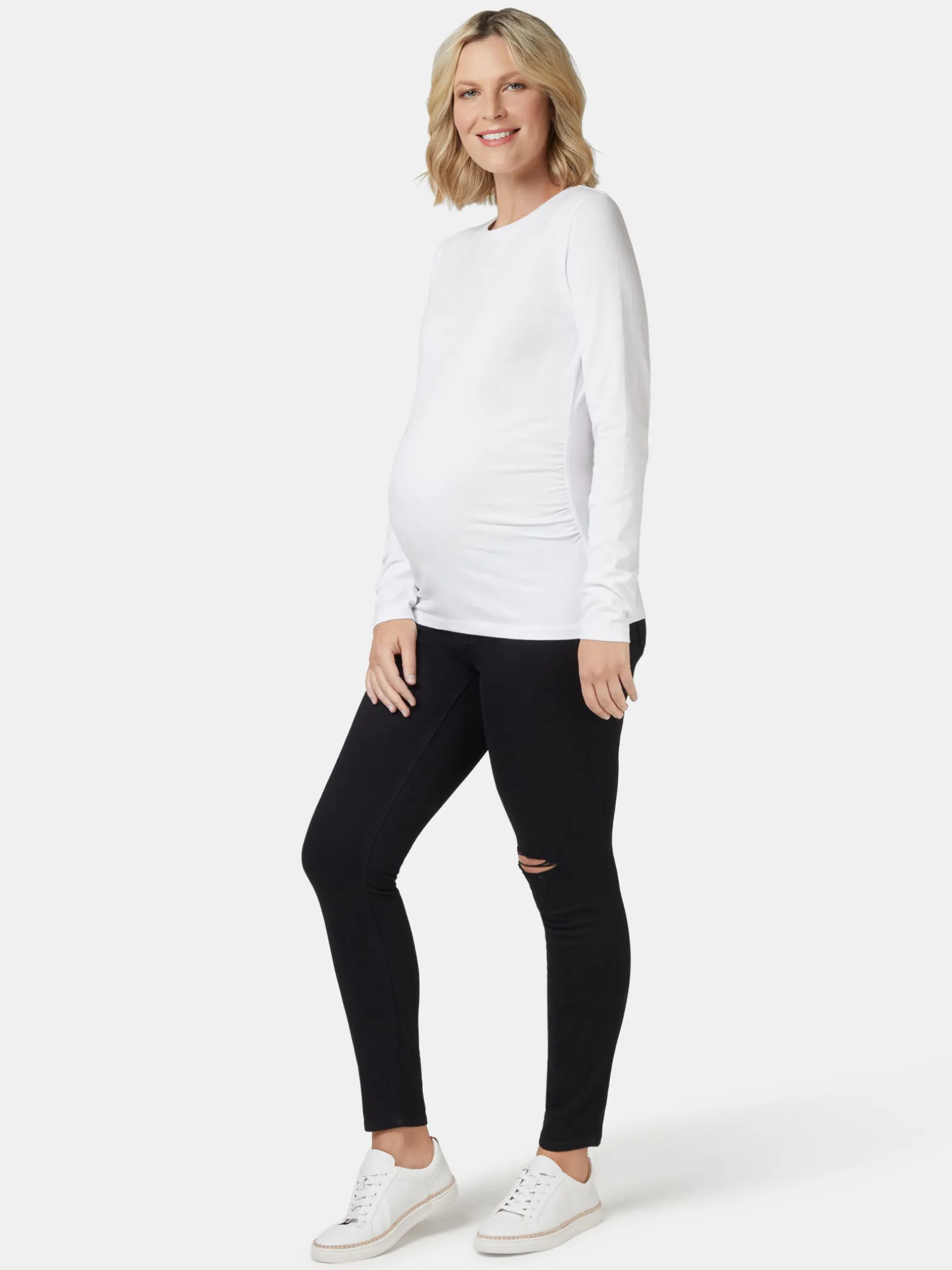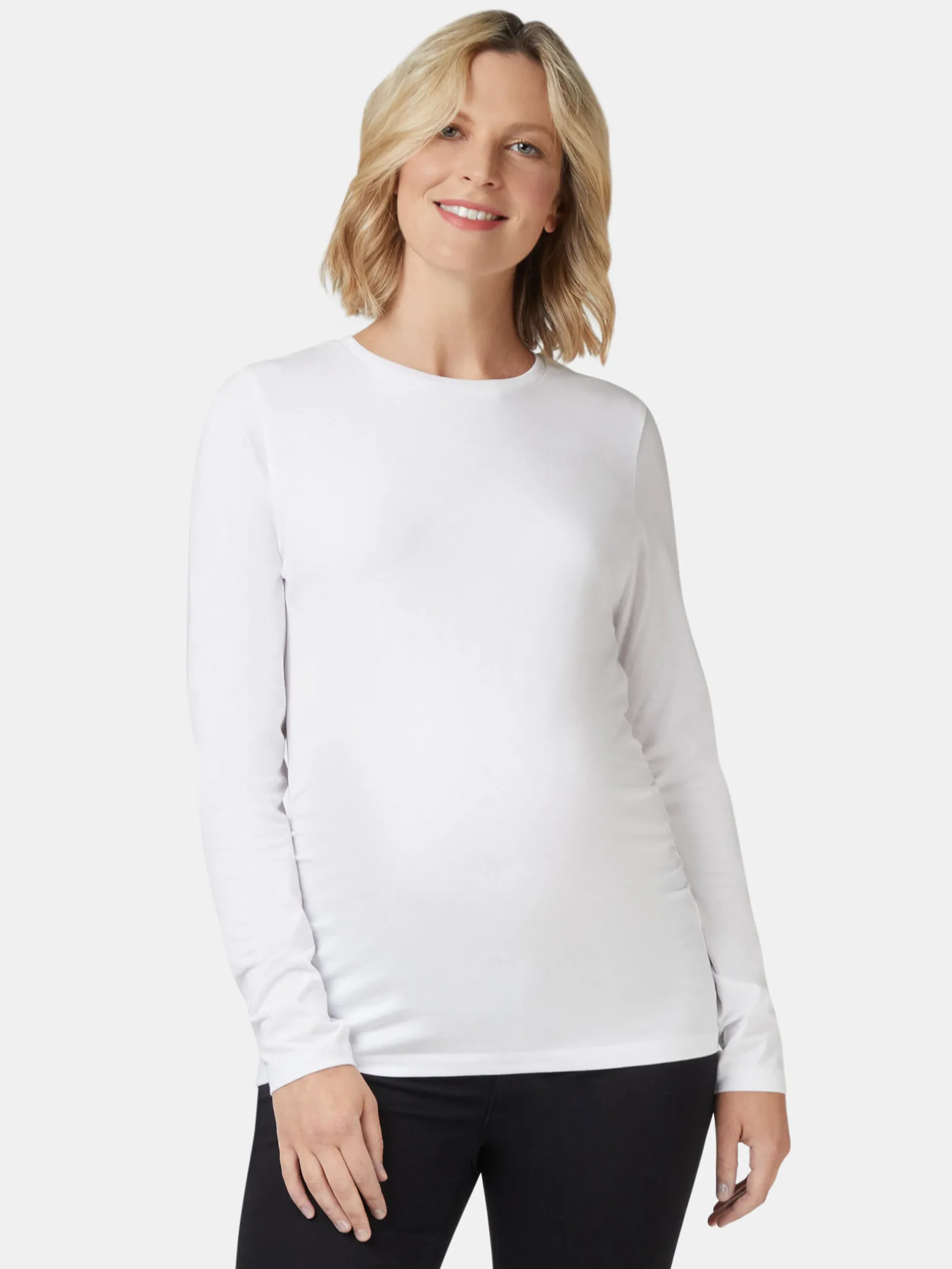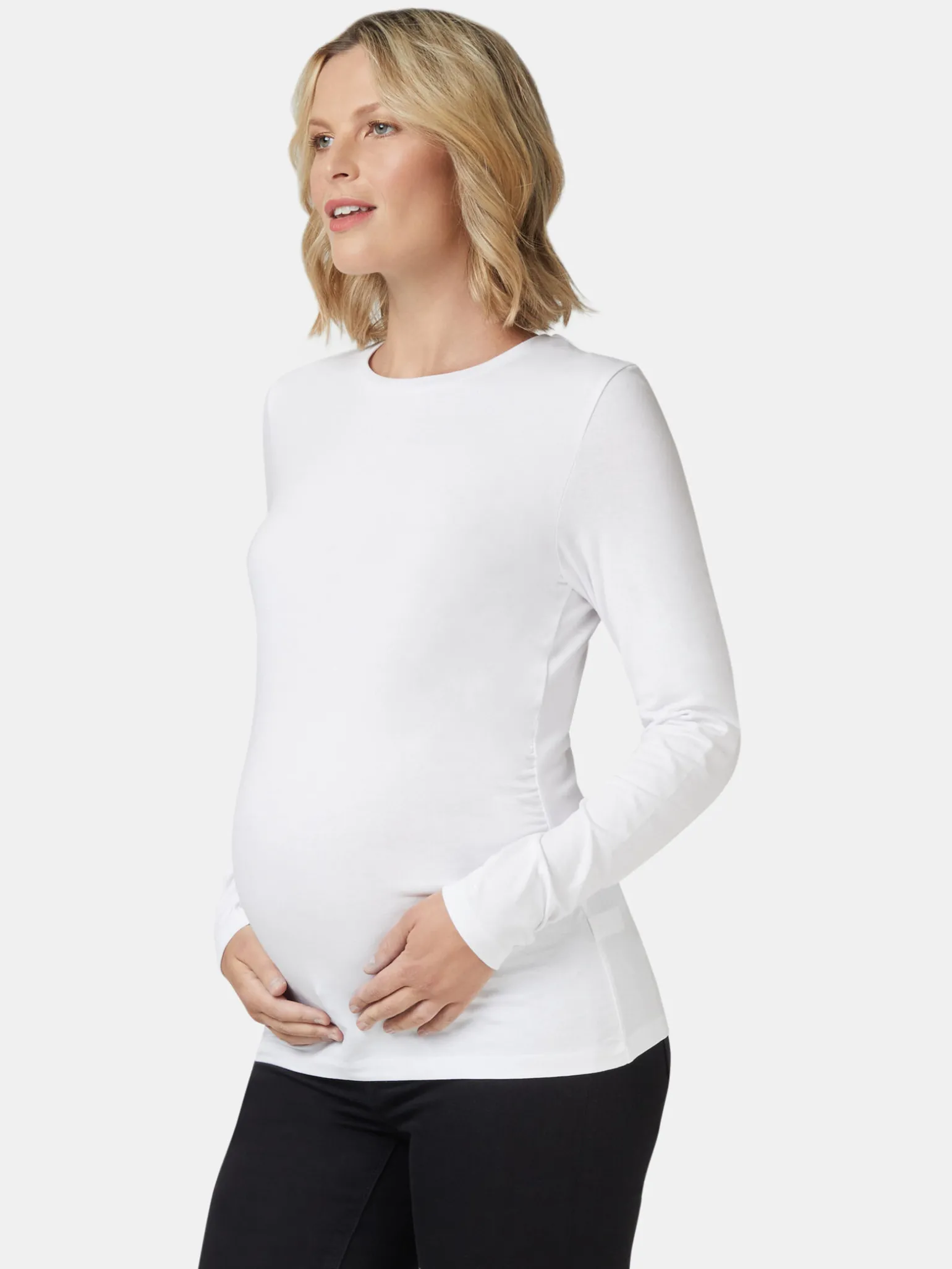 In a simple form-fitting style, our Natalie Basic Long Sleeve Top is perfect for layering this season. Features a crew neckline, full-length sleeves and a longline design to cover your growing bump. Made to keep you and bub feeling snug, wear it under knit jumpers, or pair with a denim jacket and jeans for everyday styling.
