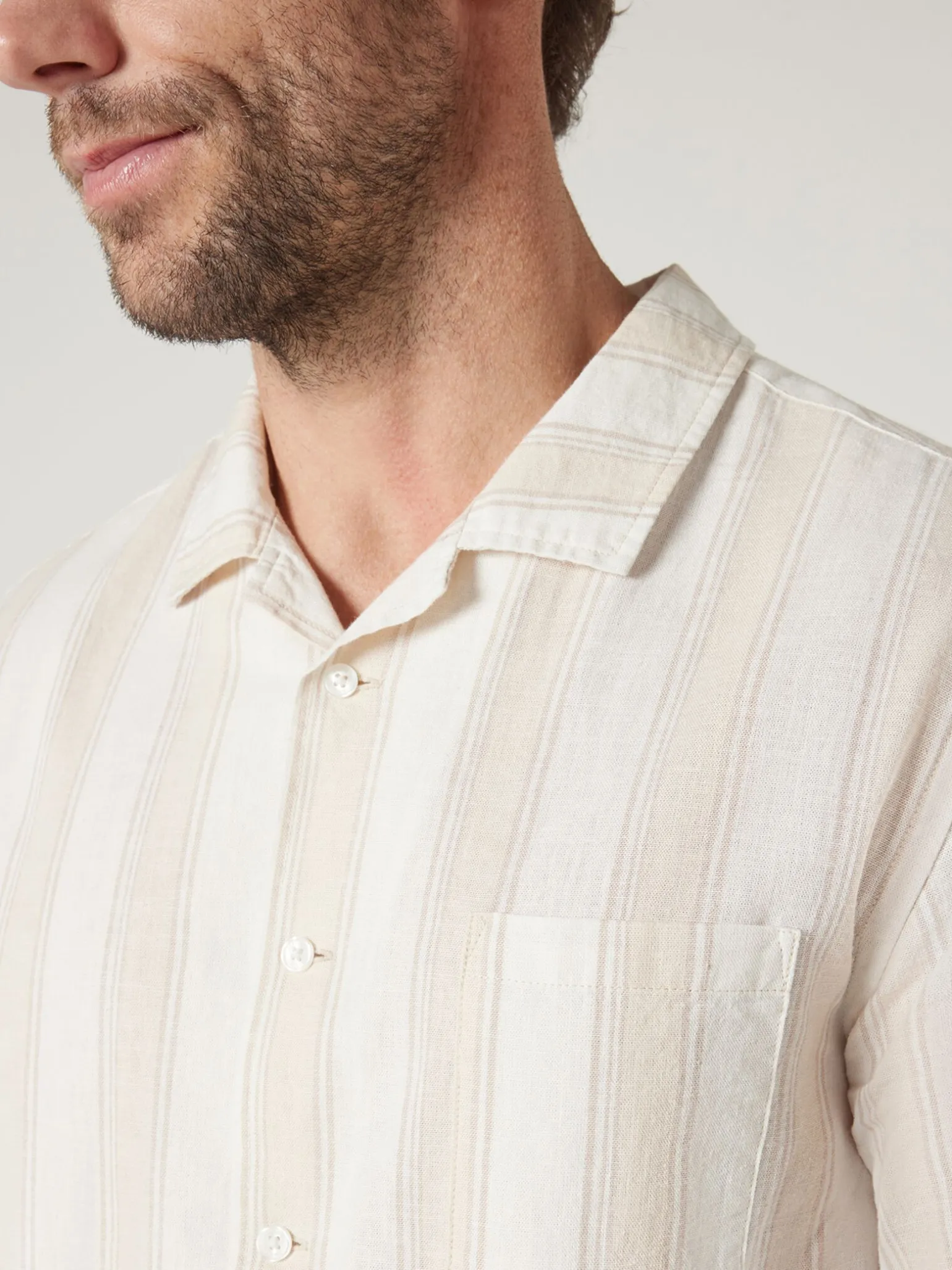Style this casual, short-sleeved shirt with your favourite jeans any time of year. Made from a soft and breathable cotton-linen fabric, this shirt features a vertical stripe detail, chest pocket and straight cut hem.