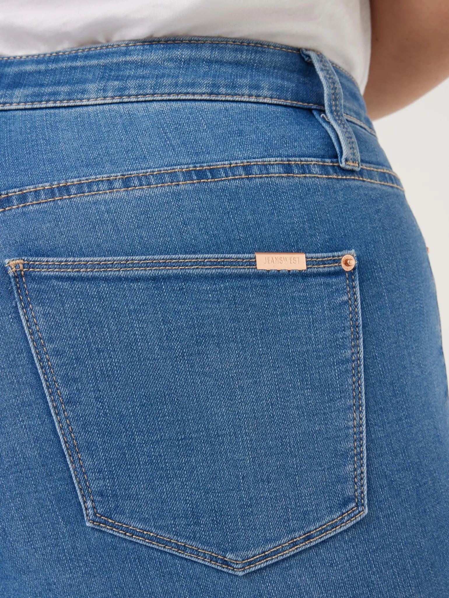 - Slim through the waist and curves with a skinny leg profile