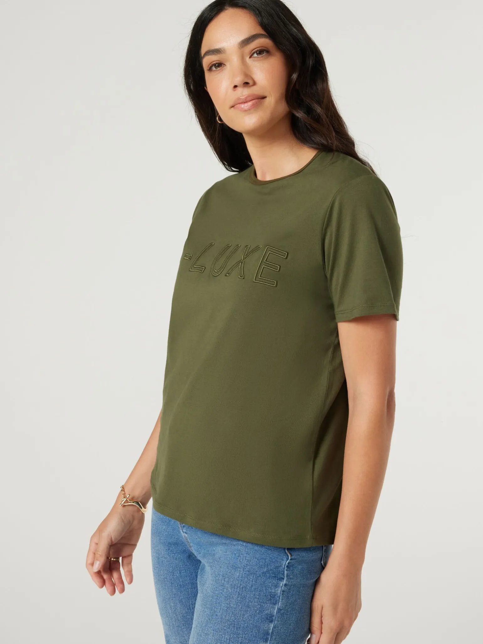 Nail that weekend ready look with this relaxed crisp, 100% pure cotton tee. Features raised J-LUXE embroidered logo. Wear it with your favourite jeans, skirt, shorts or pants all year round.