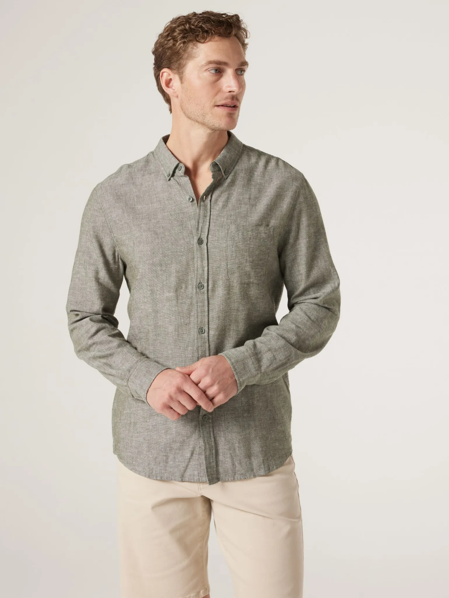 Cool and stylish, our Brody Long Sleeve Textured Shirt will be your new wardrobe favourite. Designed with a button-down collar, single chest pocket, roll up sleeves and is in a comfortable linen blend. Easily match with our denim jeans for a smart-casual look.
