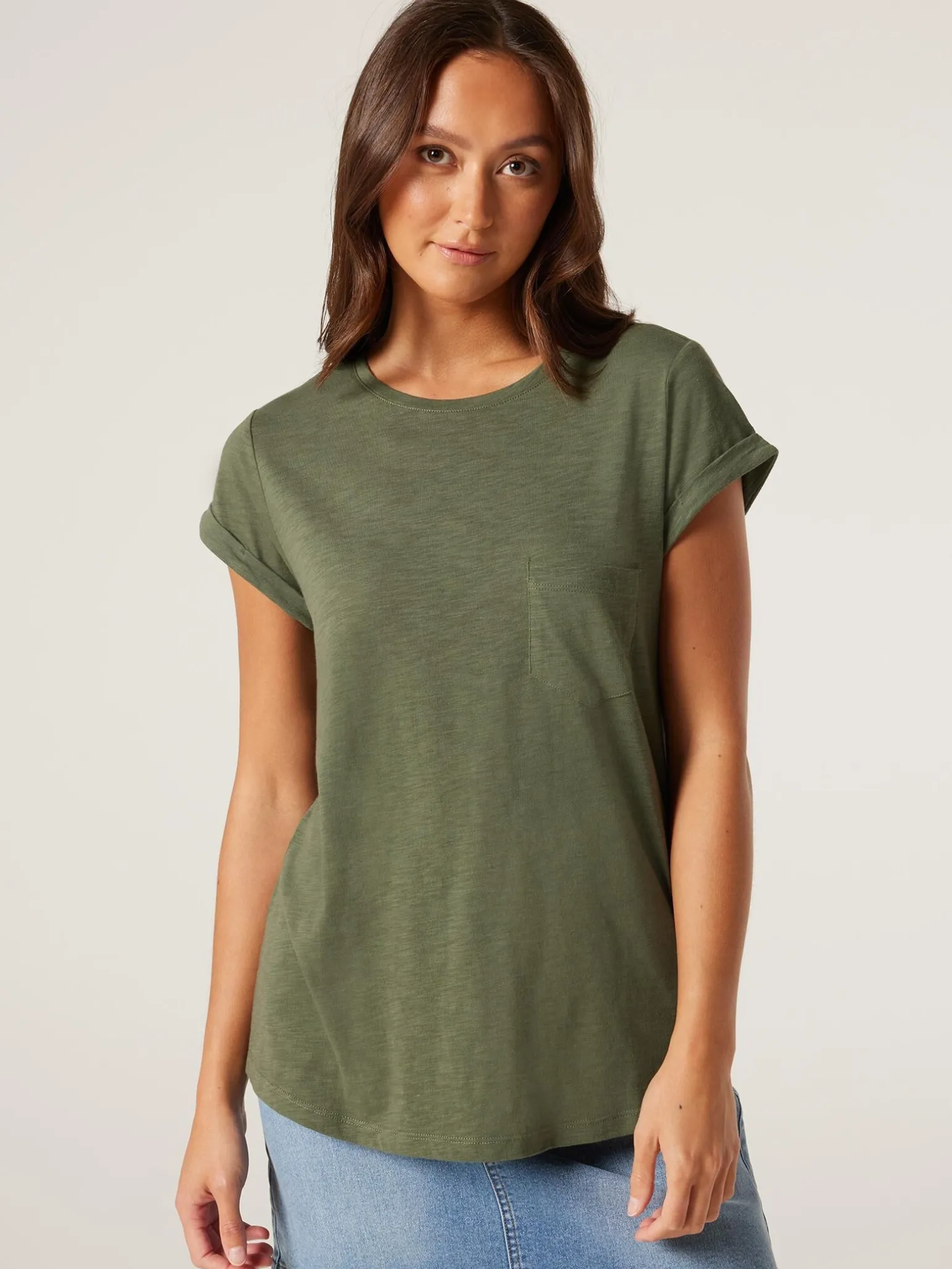 Flattering in a regular structure with wide crew neckline, this essential tee is made from pure cotton in a breathable composition with curved hem and chest pocket. Tuck it into your favourite jeans for endless transeasonal styling options.
