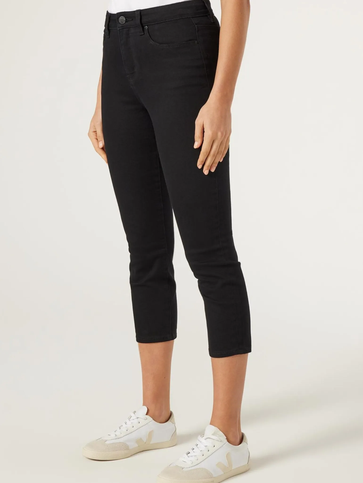 Crafted from a stretch denim for movement and comfort, these skinny fit capri pants sit on a mid-waist rise with snug fit on the waist and leg. Perfect to pair with sneakers and a casual tee, the look is complete with belt hoops and a button fly closure.