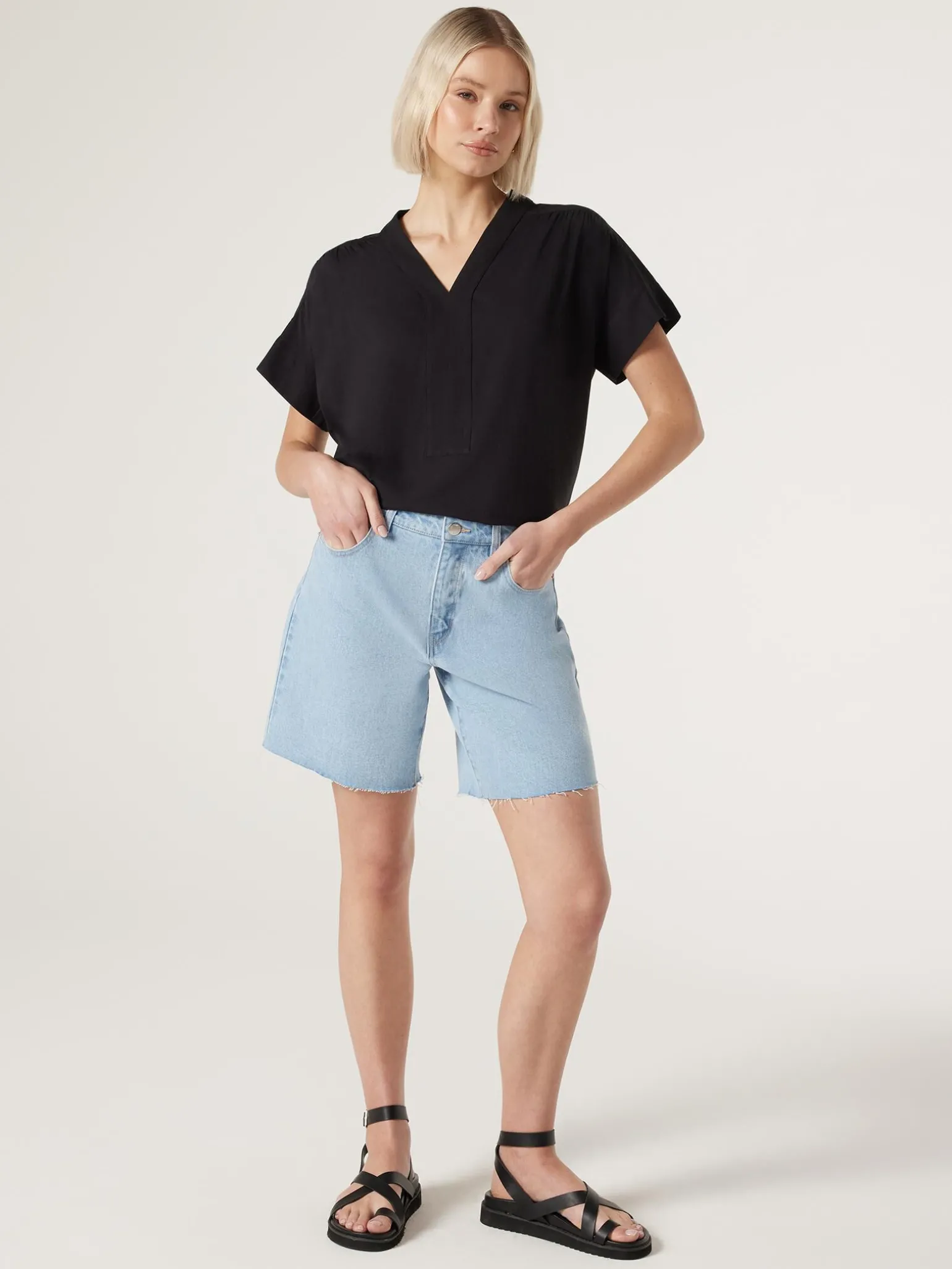 Perfect to throw on with your favourite denim all year round, this cotton top is relaxed in structure with wide sleeves …