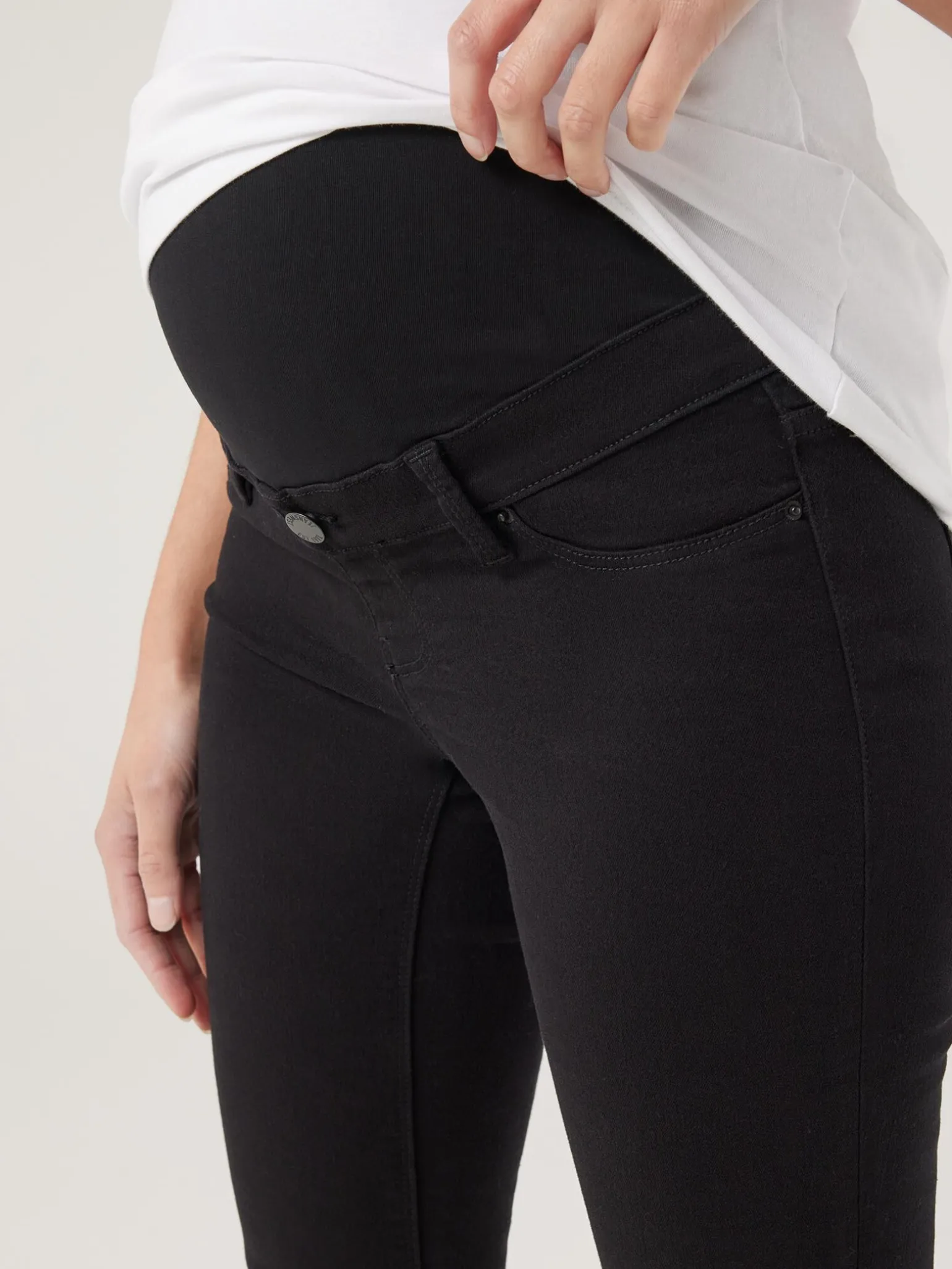 The Maternity Skinny Jeans are designed to grow with you during your pregnancy. They are made from super-stretch denim that will move and flex with you for ultimate form-fitting comfort. Featuring an elasticated tummy band to accommodate your bump, mock pockets at the front with functional back pockets, single-button closure and brushed silver hardware.