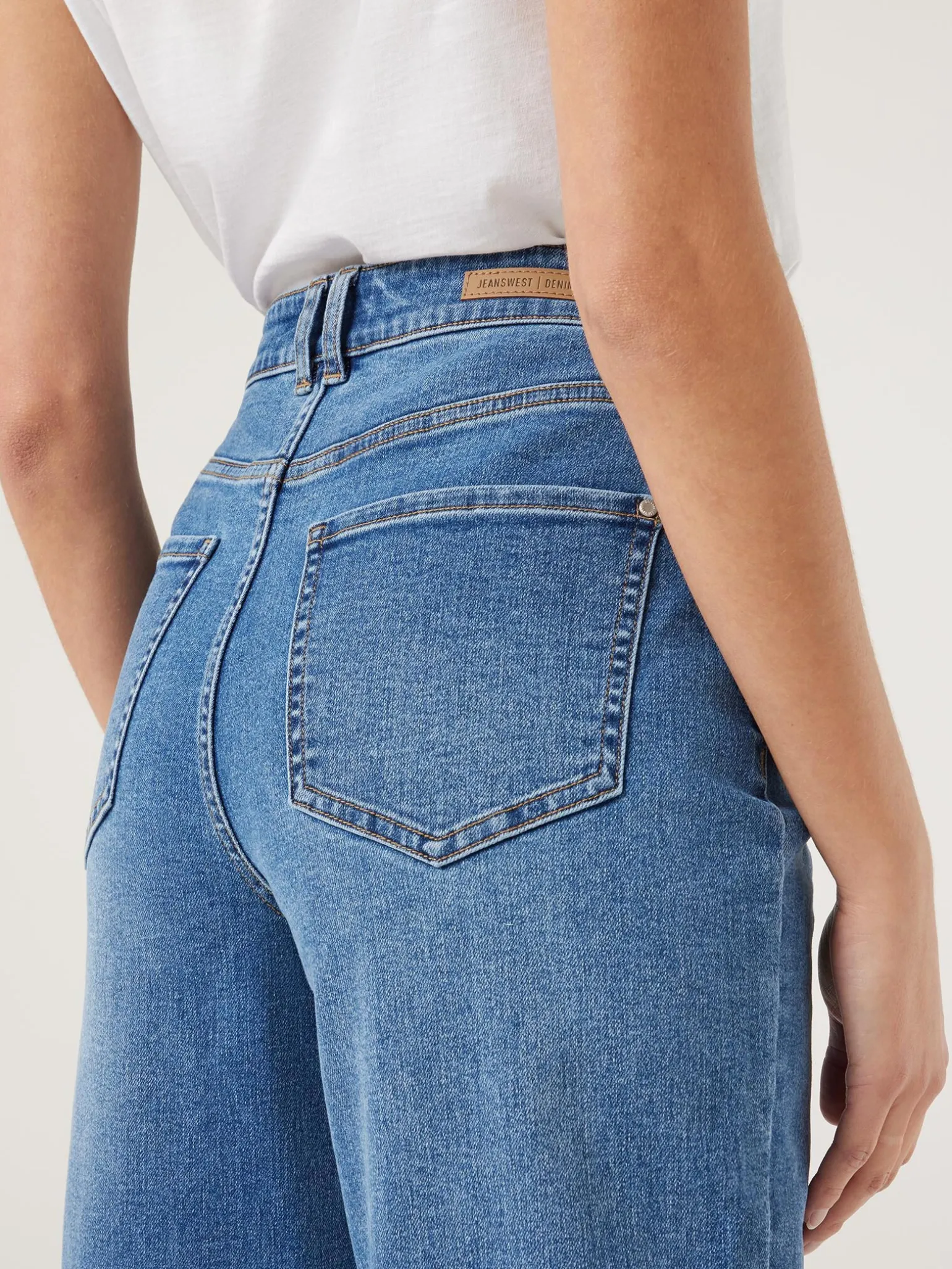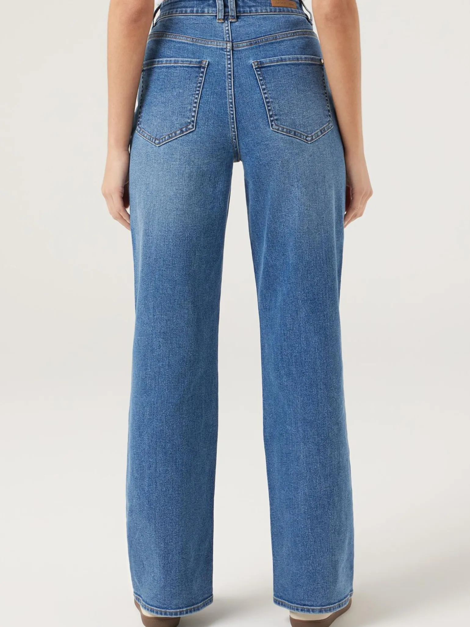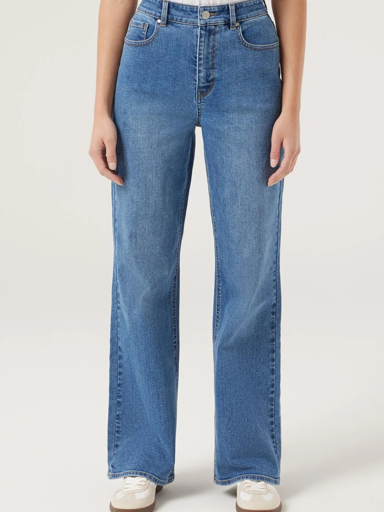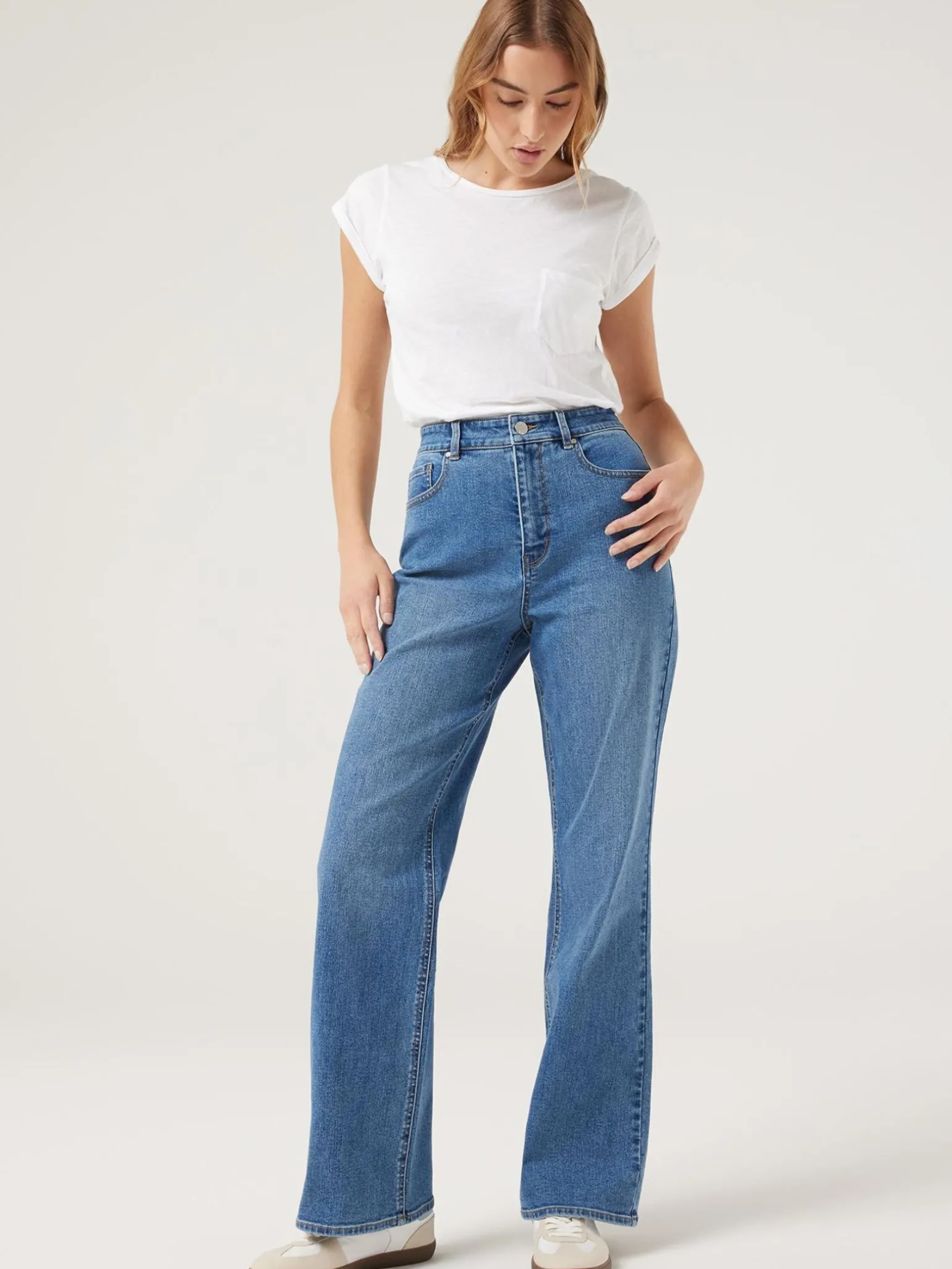 Comfy, flattering and timeless these high-waisted, wide leg jeans are fitted through the hips with a wide leg opening and a relaxed fit. Style them up with heels and your fave top, or style them down with a classic tee and sneakers for a laidback look.