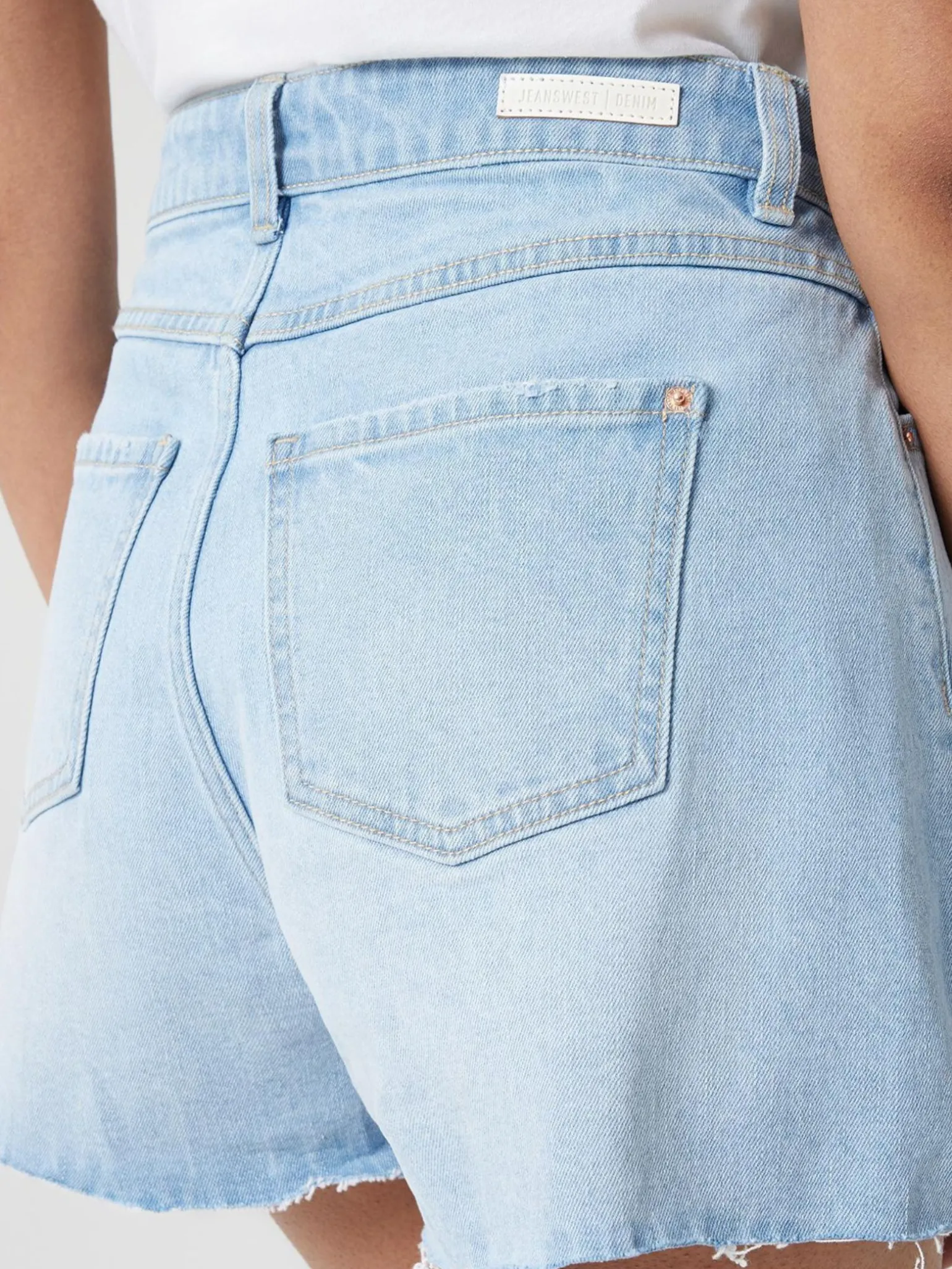 These high-waisted denim shorts are crafted from a stretch fabrication making them comfy to wear all day long. Featuring an