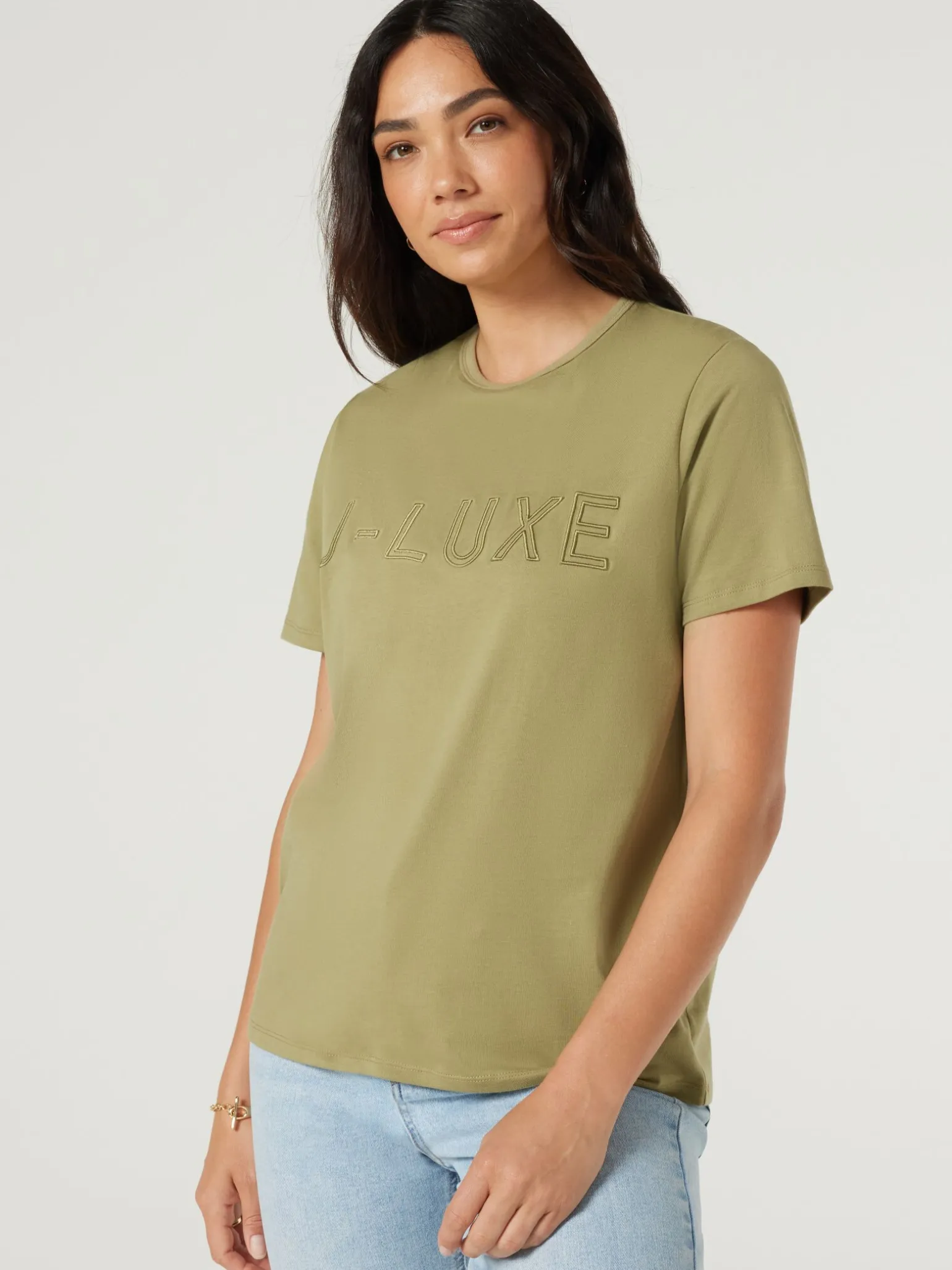 Nail that weekend ready look with this relaxed crisp, 100% pure cotton tee. Features raised J-LUXE embroidered logo. Wea…