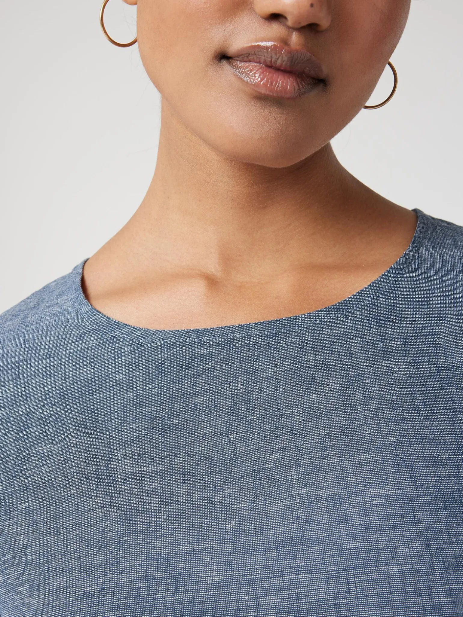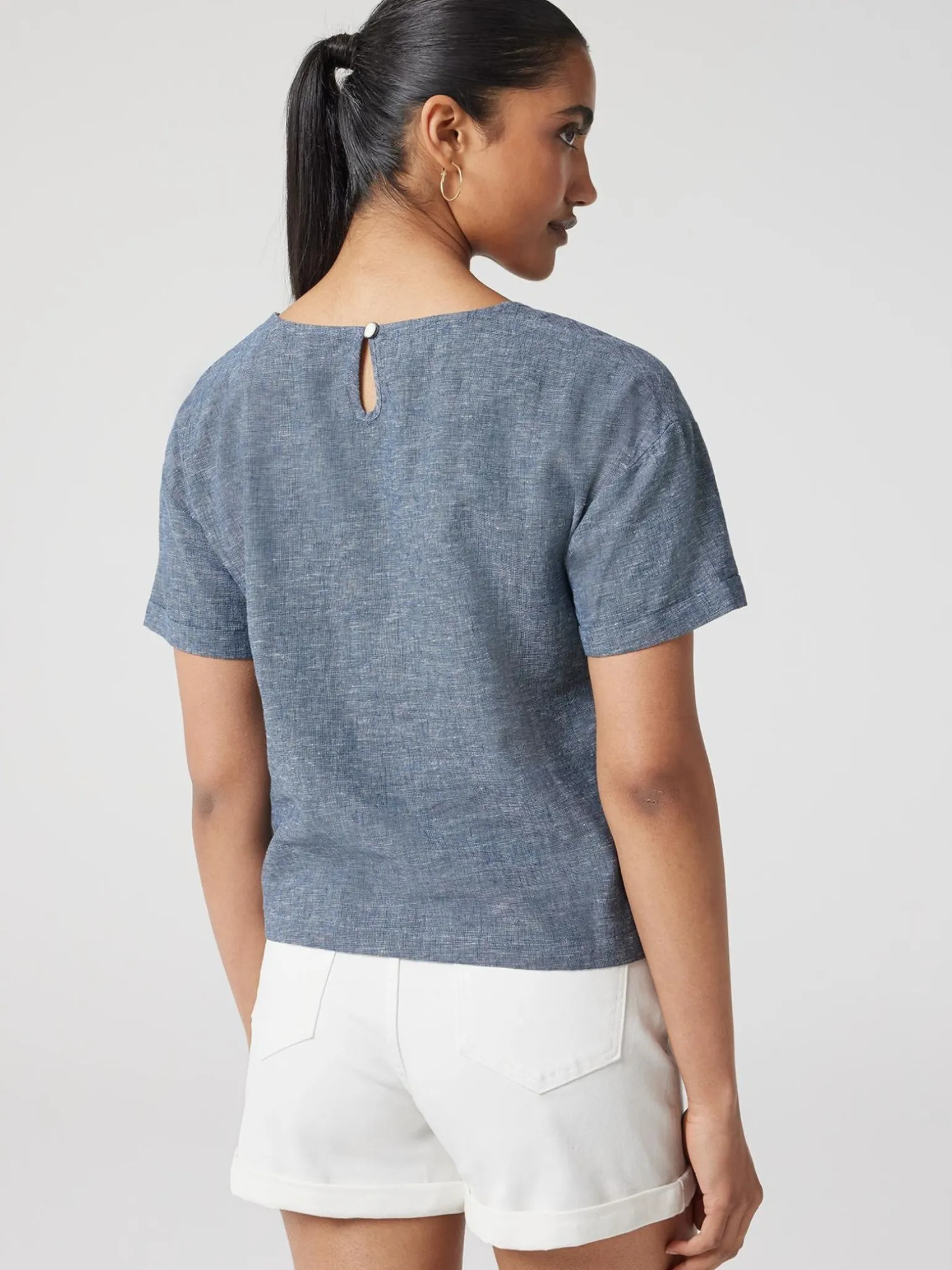 Crafted from a breathable linen blend fabrication, this classic, relaxed fit tee features a crew neckline, and short cuffed sleeves. Details like the side split and center back keyhole opening elevate the look.
