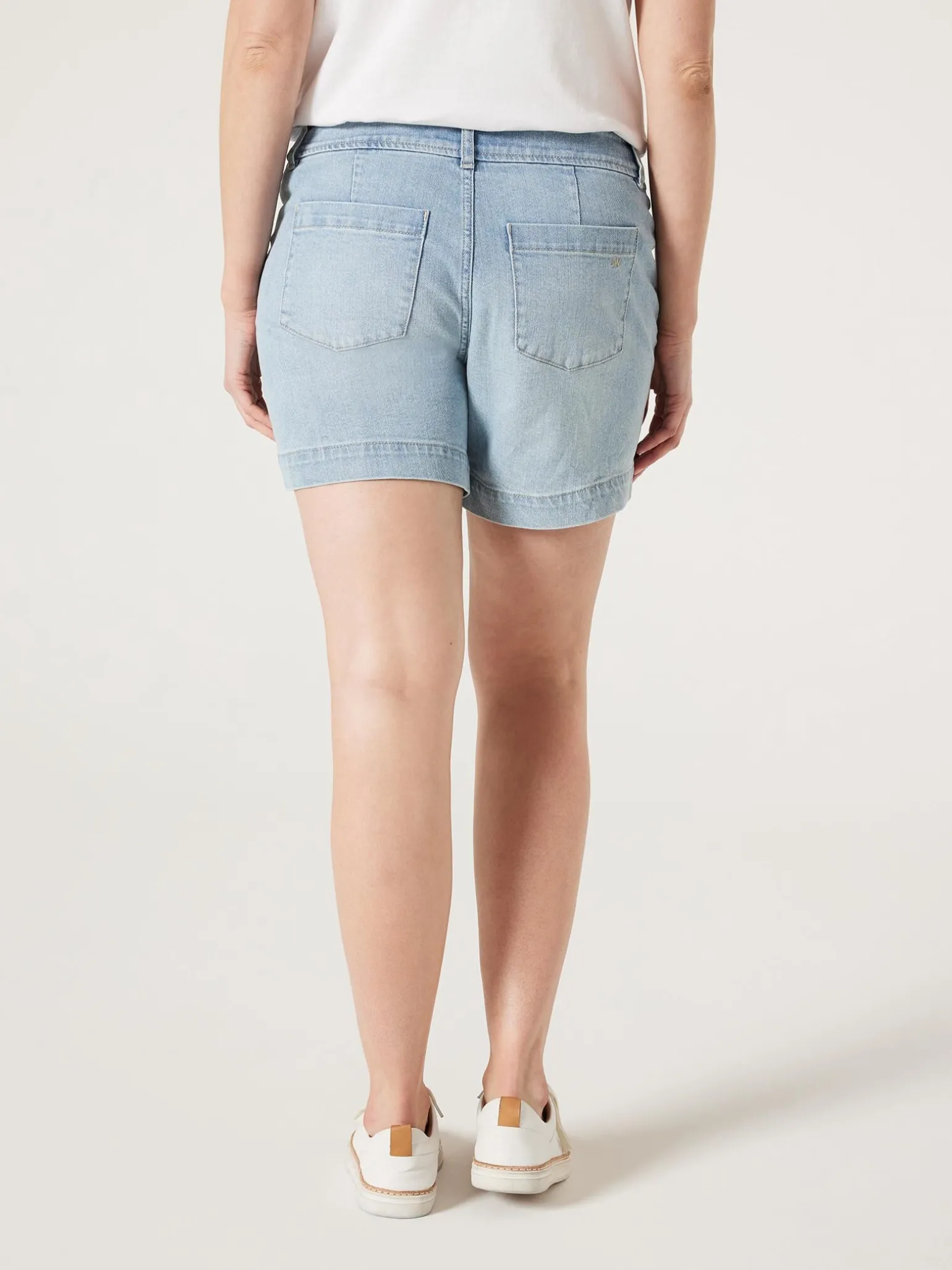 Made from a stretch denim for extra movement, these maternity denim shorts are flattering with specially designed elasticated waistband, slanted side pockets, and silver-toned hardware. Style them with a casual tee for a weekend ready look.