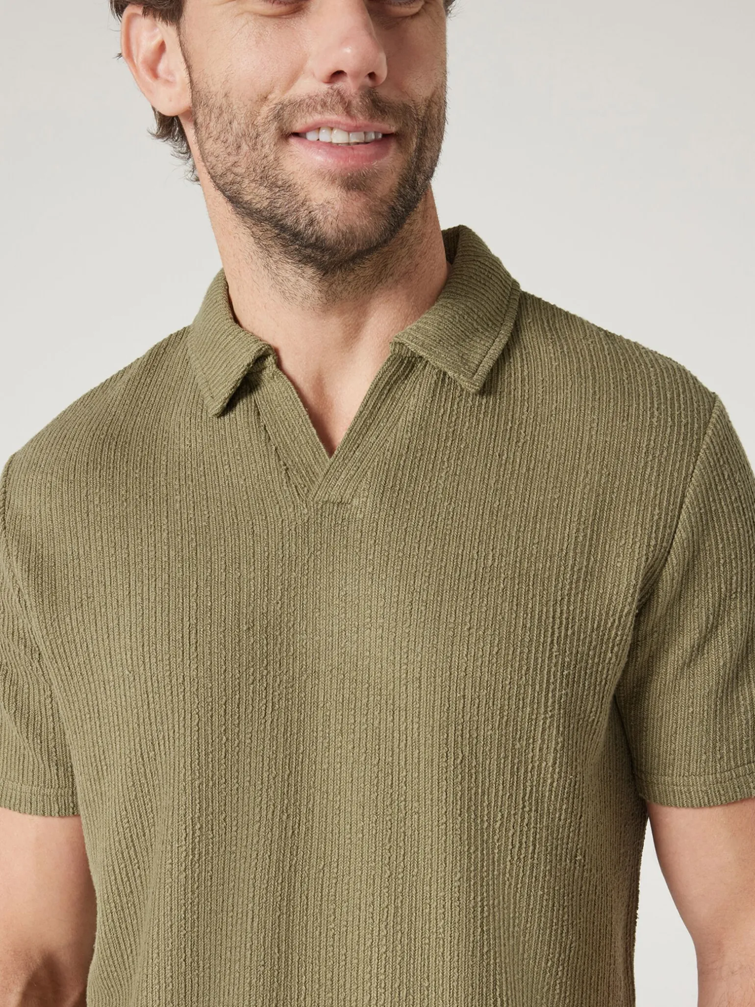 Made from a textured cotton fabric, this sporty polo features a unique buttonless placket and contrast texturing to the collar. Cut to a relaxed fit, this weekend essential pairs perfectly with chinos or denim.
