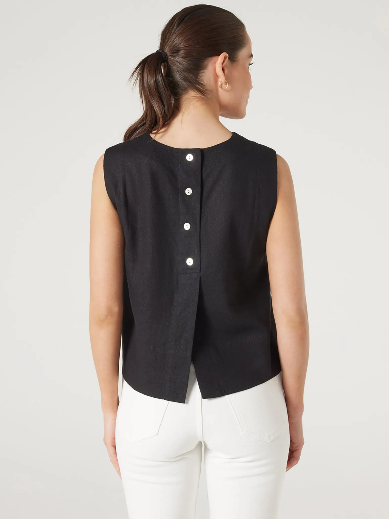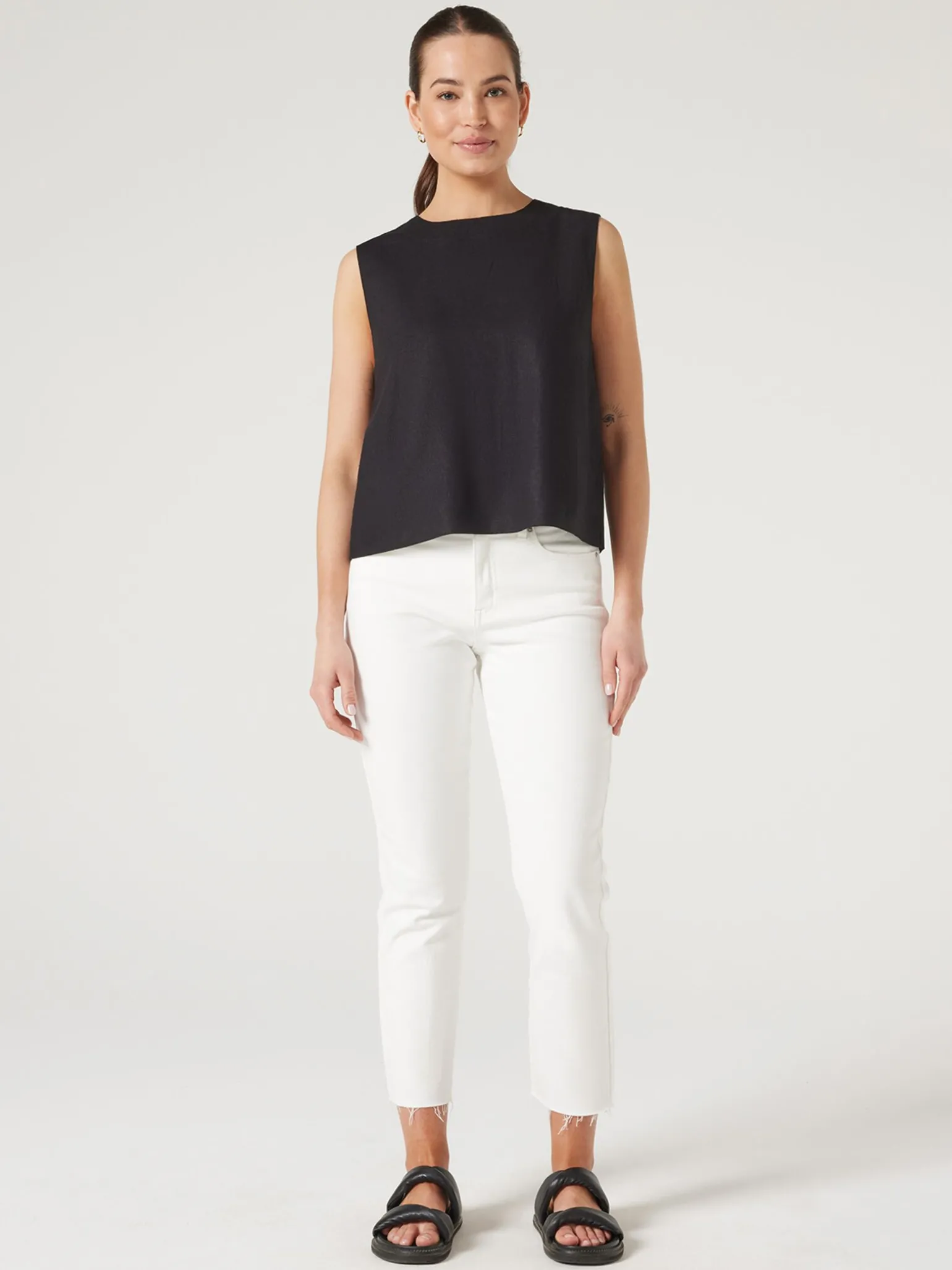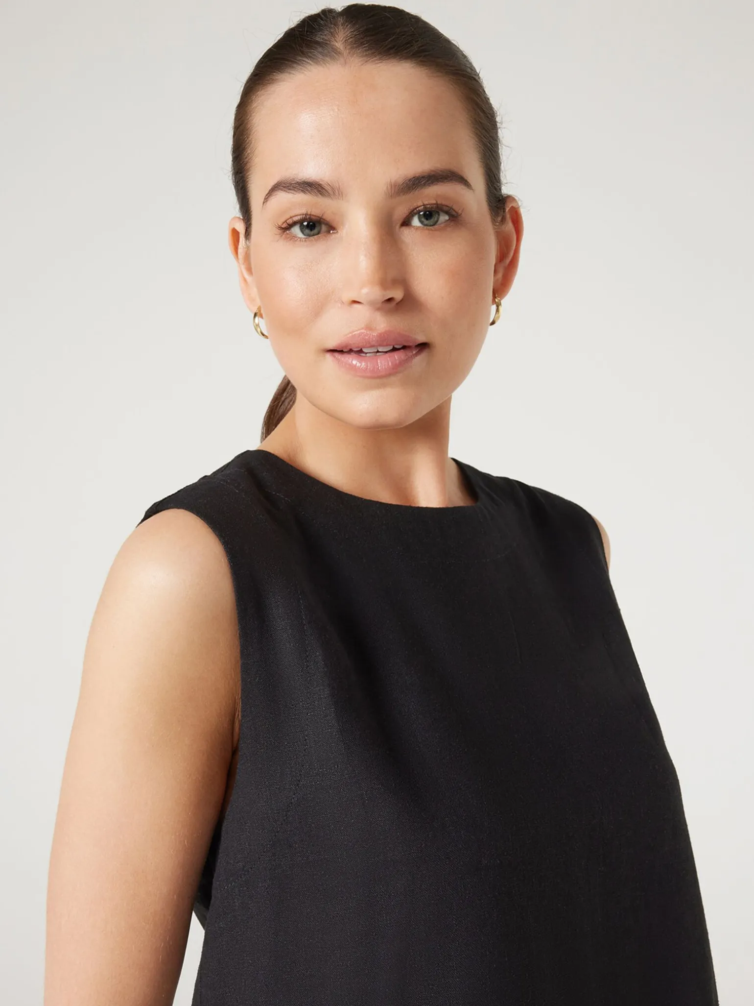 Elevate your wardrobe with this minimalist linen-blend top, designed for effortless style. Featuring a crew neckline, sleeveless cut, and cropped length, this relaxed-fit top is perfect for pairing with high-waisted denim or tailored trousers for a chic and versatile look.