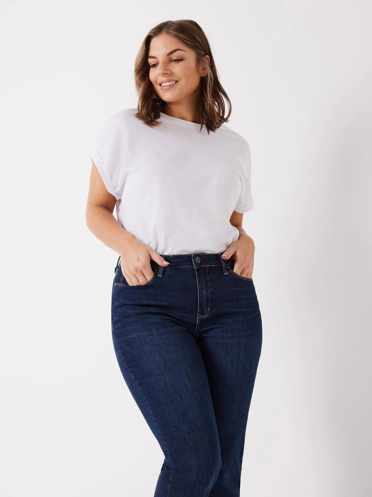 Our Curve Embracer Slim Straight Jeans have been designed and engineered to fit the waist and hug the curves of the hips and thighs to create the perfect fit. Made from super-stretch denim, and cut with a waistband that won’t gape at the back, they will move and flex with you for ultimate, form-fitting comfort. With classic 5-pocket styling, these jeans fit snug through the hips and thigh, with a straight leg style from knee to hem.