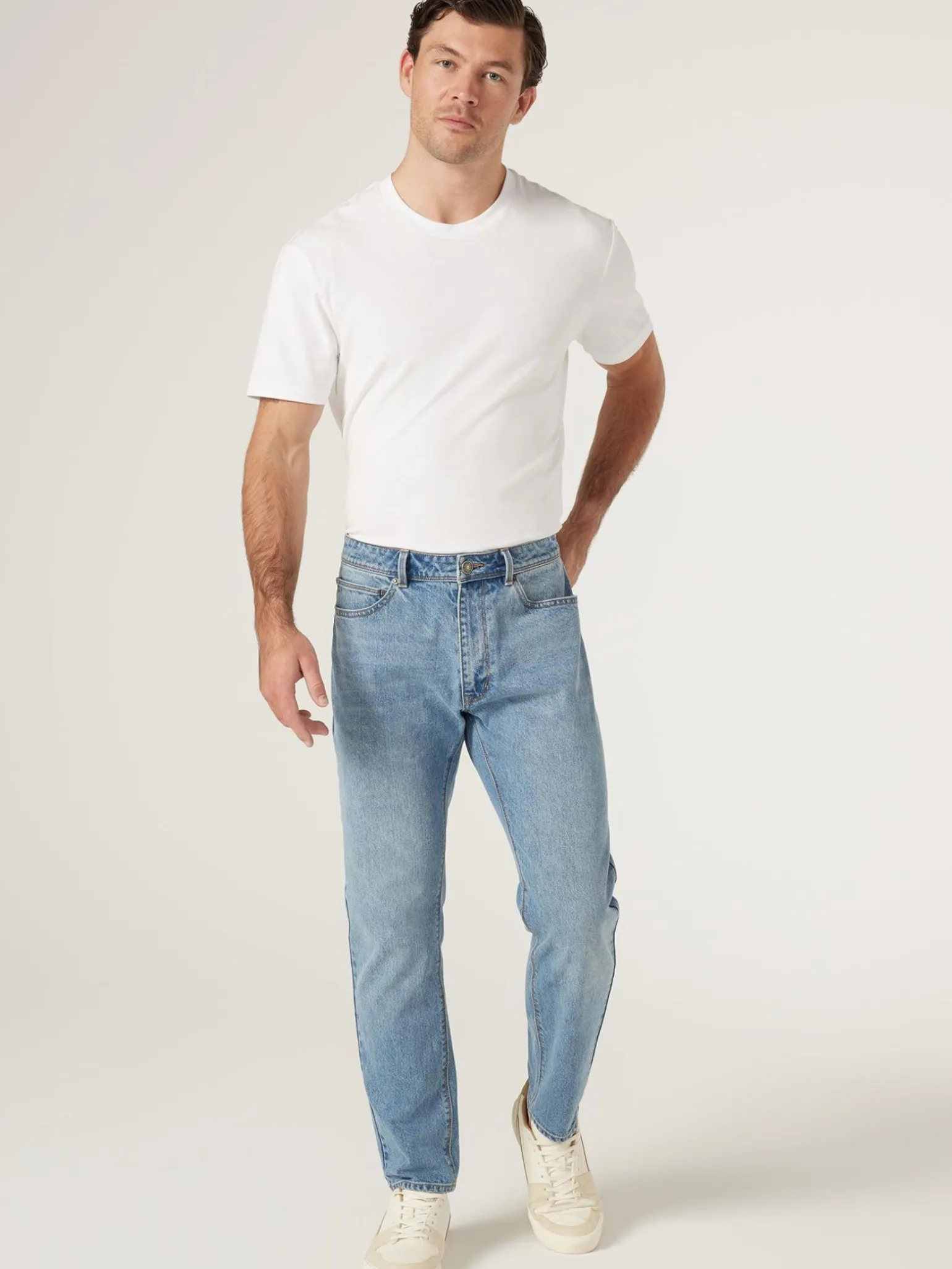 Our relaxed straight leg jeans offer laid-back style. Cut to sit below the waist and with a relaxed fit throughout the hips and thigh, these jeans have a straight leg profile from knee to hem. Add a classic white tee for a timeless, minimalist look. Or add layers to your look by pairing with a shirt and jacket. Our washed black edition is a staple addition for every wardrobe.