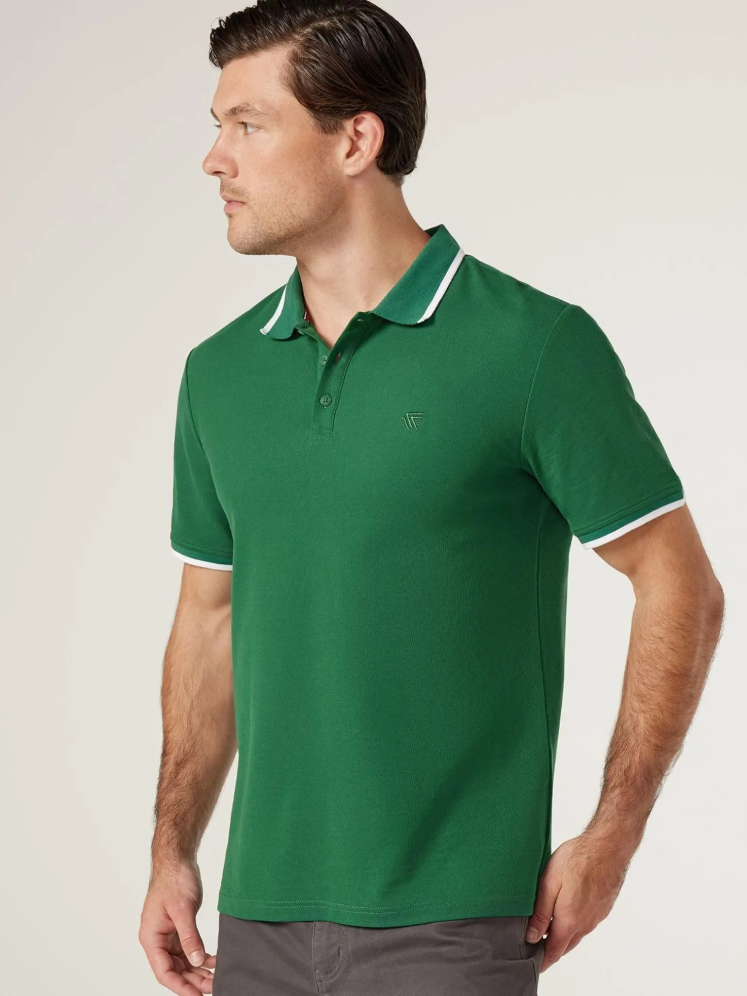 Sporty and refined, this contrast tipped polo is cut from a soft and breathable cotton polyester blend with classic three-button placket collar. The style is flattering in a regular structure with slightly dropped shoulders. Style it over denim or cargos for versatile options all year round.